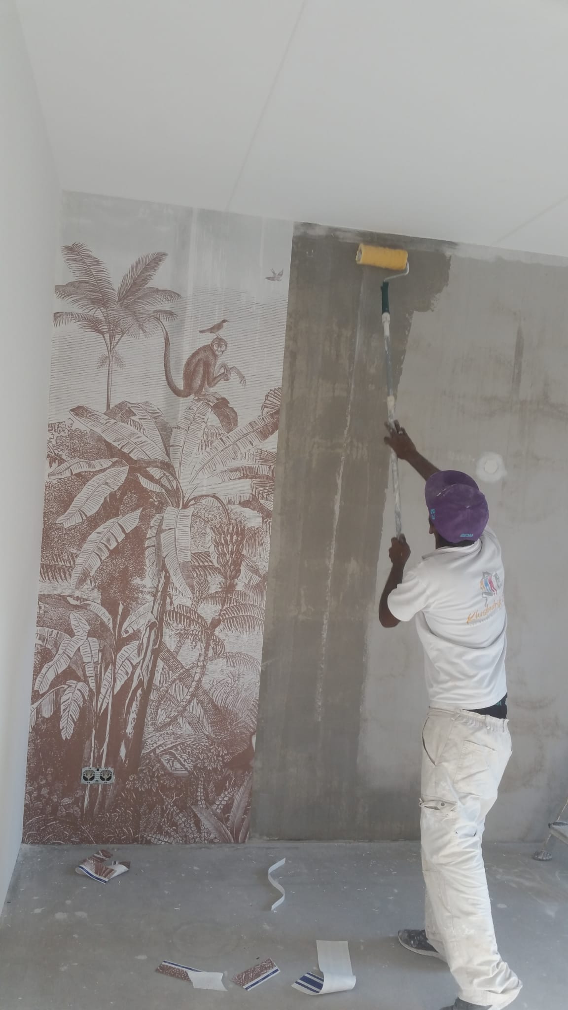 “Wij zijn heel blij met onze muren die gedaan zijn door Goelem en Mohammed met glasvlies behang en daarna is het in de gewenste kleur gemaakt.